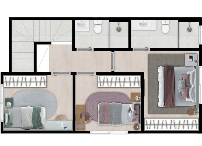 3 dormitórios, sendo 1 suíte